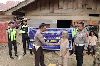 Kegiatan bakti sosial berupa pembagian paket sembako dipimpin langsung oleh Kasat Lantas Polres Toraja Utara AKP Ahmadin didampingi Ps. KBO Sat Lantas AIPDA Zeth dan dikuti oleh Personel Sat Lantas lainnya.